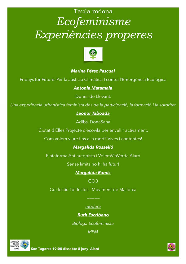 Dissabte 8 de juny, 19h. Taula rodona: ecofeminisme, experiències properes. A Son Tugores, Alaró. ![]()