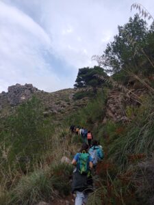 Una vegada hem fet aquesta primera reflexió sobre l’inici del primer boom turístic, els infantils, acompanyats per les educadores i pre-educadores, han preparat, per grups, una escena teatral, per representar diferents situacions i vivències d’aquella època. Mentrestant, els juvenils han caminat una mica més fins al mirador del Pi de ses Creus, on han fet un joc de rol guiat per les educadores. Entre els personatges del joc, hi apareixien els pagesos, empresaris hotelers i el govern. Cada personatge tenia els seus propis interessos i entre tots havien d’arribar a un acord. Aquestes dues dinàmiques, per infantils i juvenils, han ajudat a situar-nos als anys 60 i 70 i empatitzar amb un context completament diferent de l’actual.