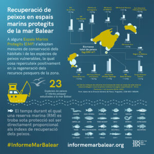 A les Illes Balears comptam amb una xarxa de 12 reserves marines d’interès pesquer que ha demostrat ser una eina útil per recuperar biodiversitat i fer més sostenible l’activitat pesquera. Les reserves marines són espais de vida, refugi d’espècies i garantia de futur per a la pesca artesanal, que permet disposar de peix fresc, de temporada i proximitat en el mercat.