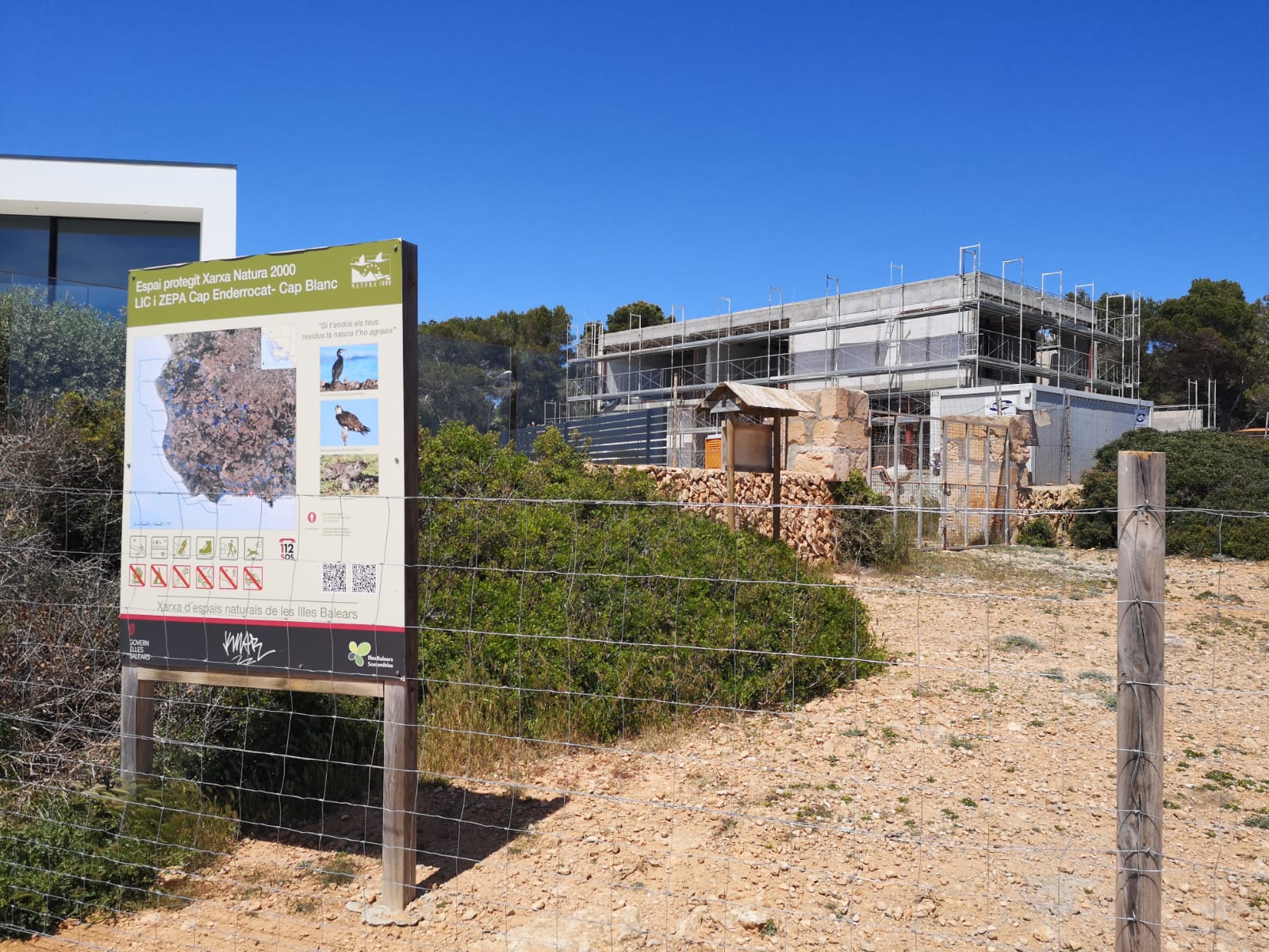 El GOB també alerta que part dels pals del tancament s’han fixat amb materials impropis com ciment o formigó, i que en alguns trams s’ha eliminat vegetació existent, incloent-hi mates, pins i savines. Igualment, s’ha constatat que un dels cartells informatius de Xarxa Natura 2000, situat a l’inici de la finca a la zona de Vallgornera, ha quedat integrat dins el perímetre tancat, dificultant-ne la seva funció informativa.